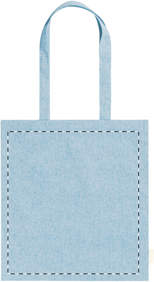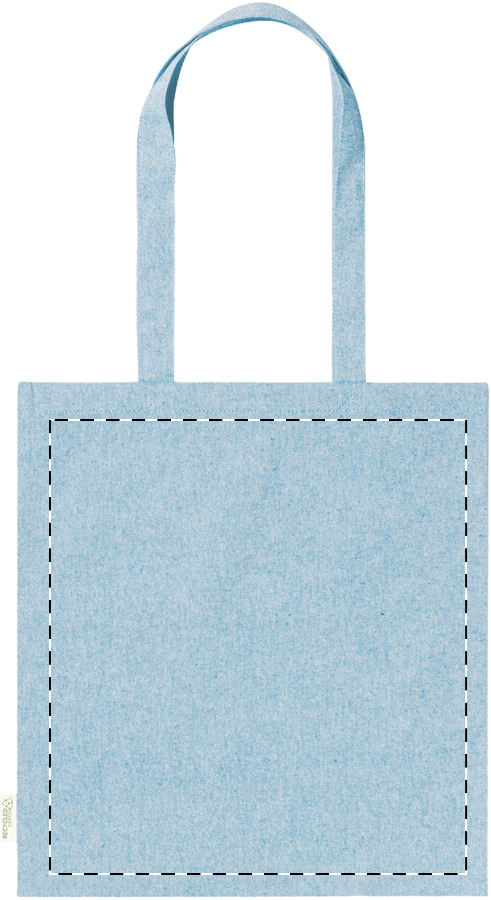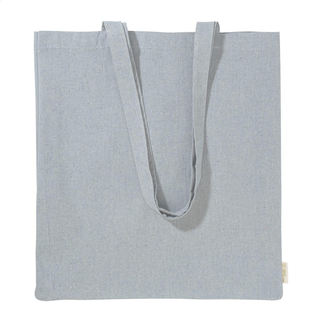 Opakovaně použitelná nákupní taška ze 100% recyklované bavlny s dlouhými uchy a výrazným štítkem z recyklované bavlny, 140 g/m².