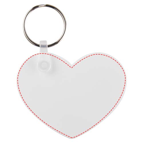 Bílá klíčenka ve tvaru srdce s kovovým kroužkem. Kovový kroužek má plochý profil, který je ideální pro korespondenci.