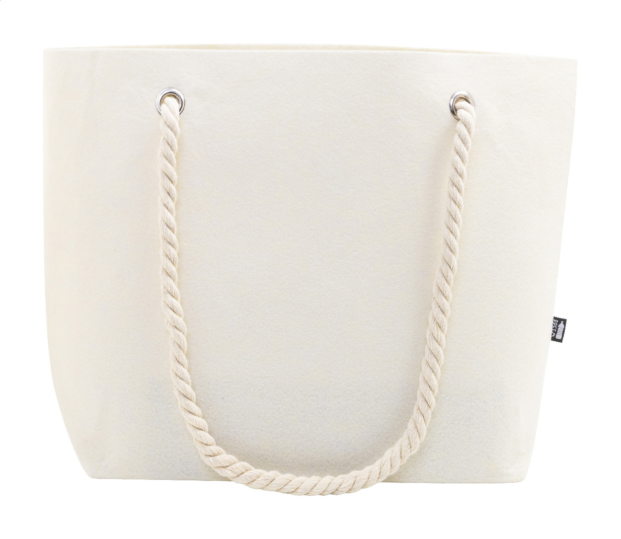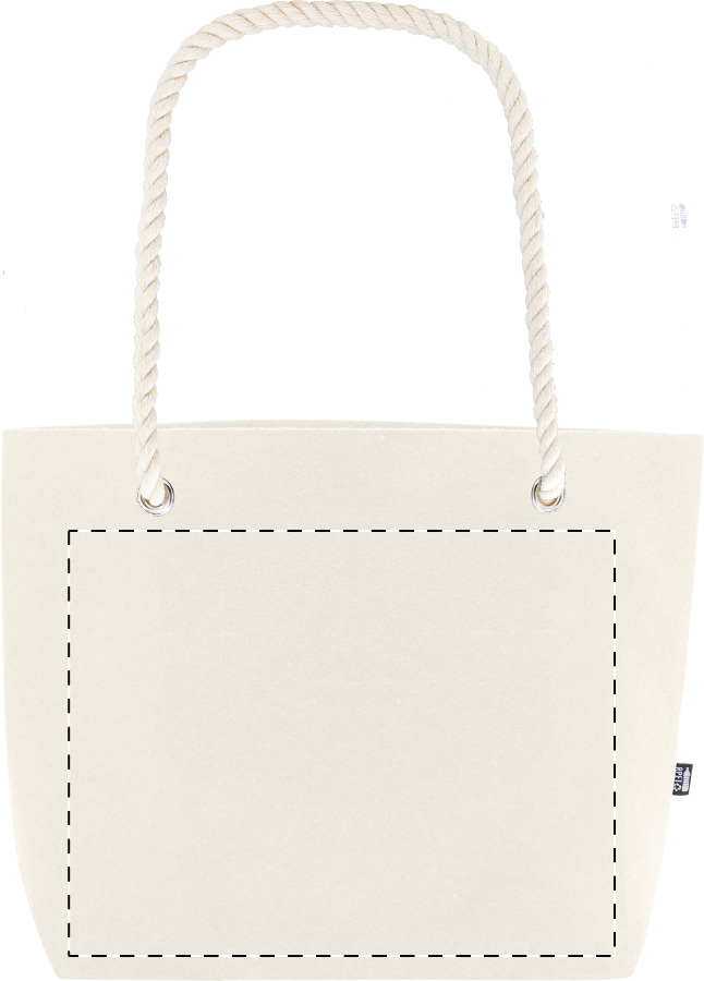 Plážová nebo nákupní taška z RPET s bavlněnými šňůrkami a spodním klínkem. S výrazným štítkem RPET.