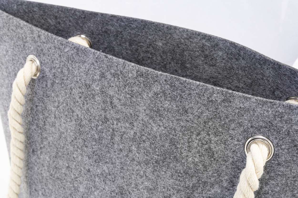 Plážová nebo nákupní taška z RPET s bavlněnými šňůrkami a spodním klínkem. S výrazným štítkem RPET.