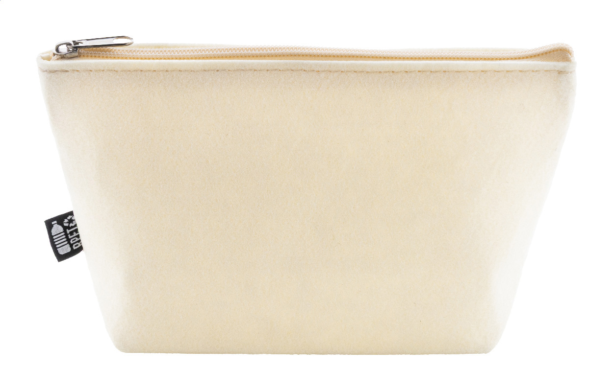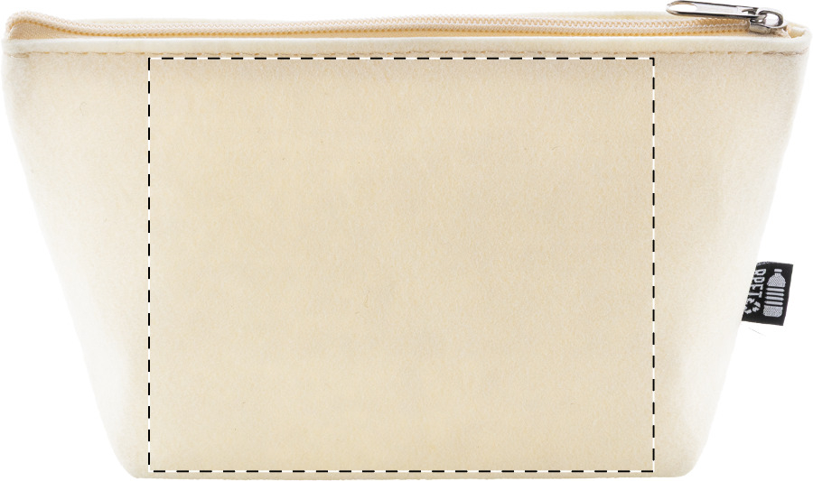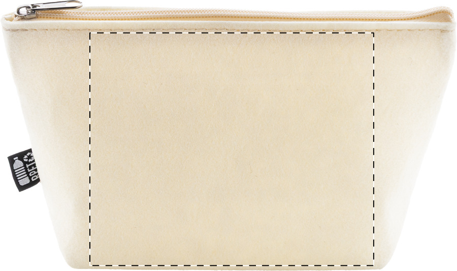 Kosmetická taška z RPET plsti na zip. S výraznou etiketou z RPET.