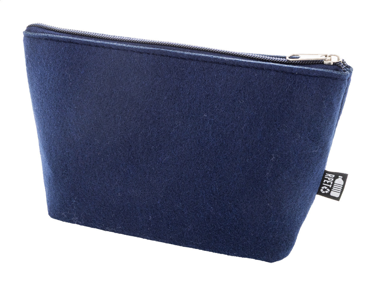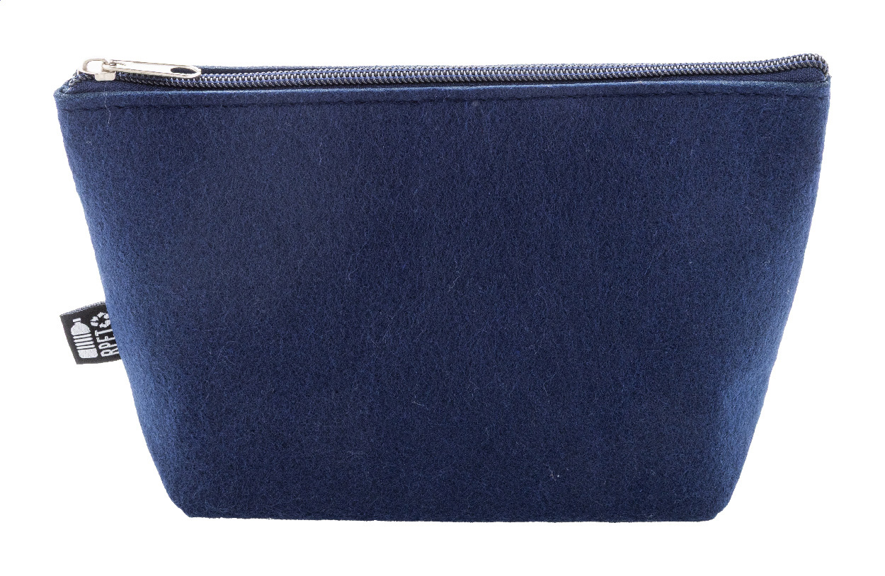 Kosmetická taška z RPET plsti na zip. S výraznou etiketou z RPET.