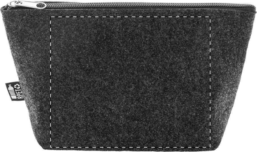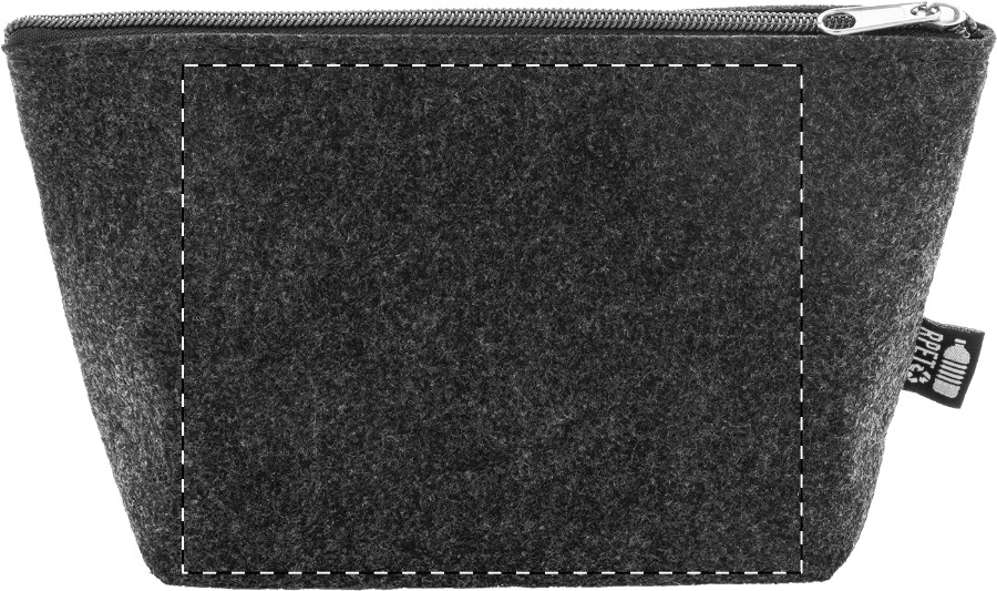 Kosmetická taška z RPET plsti na zip. S výraznou etiketou z RPET.