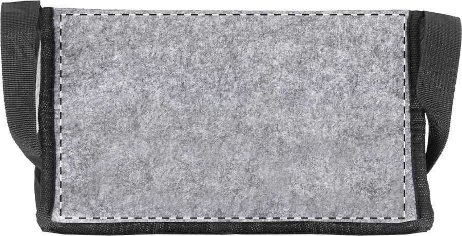 Využívá bezpečné zapínání na zip a přední kapsu pro uložení drobností, které nevyžadují chlazení. Pevná boční ucha usnadňují manipulaci a zvýrazněný RPET štítek odkazuje na ekologický původ plstěného materiálu.