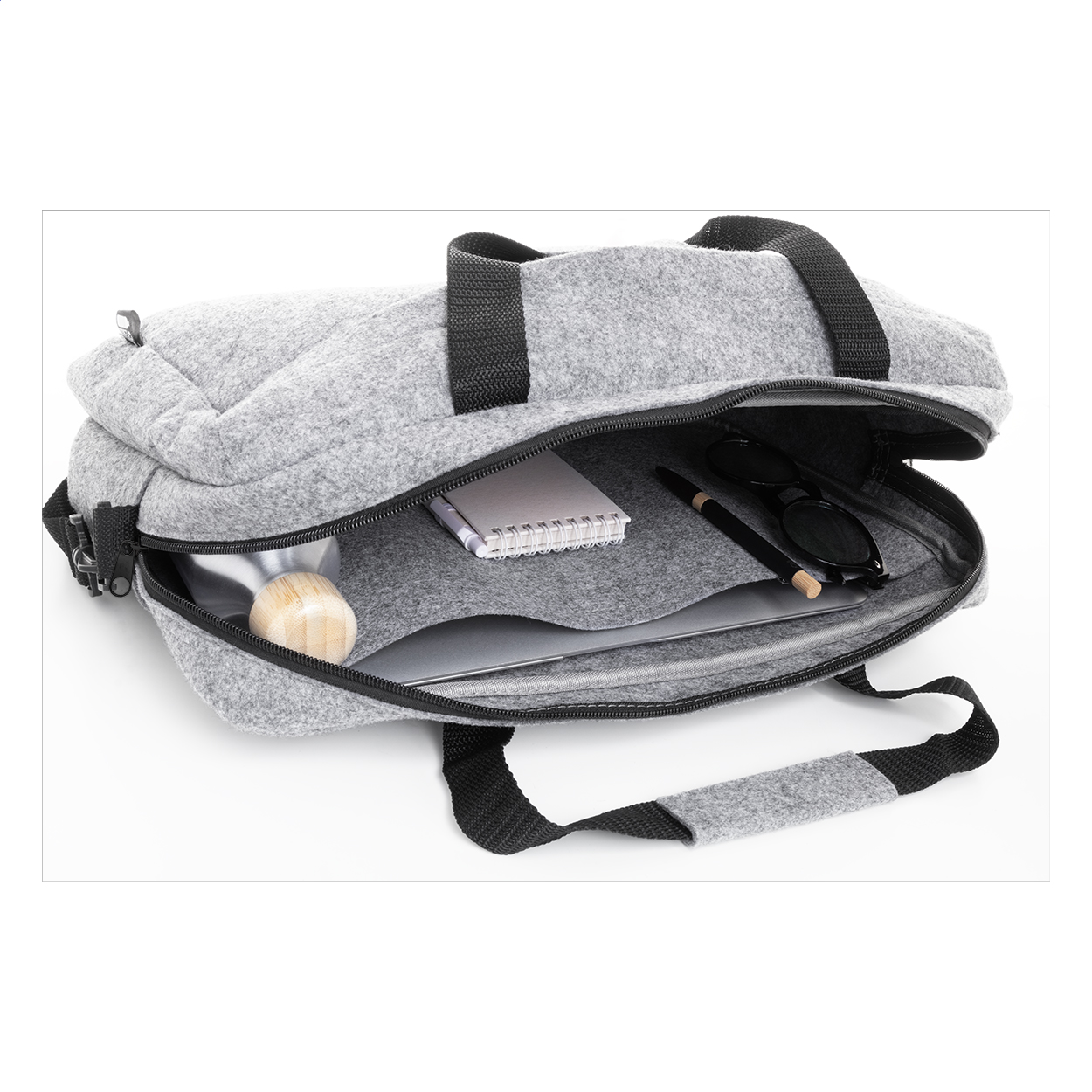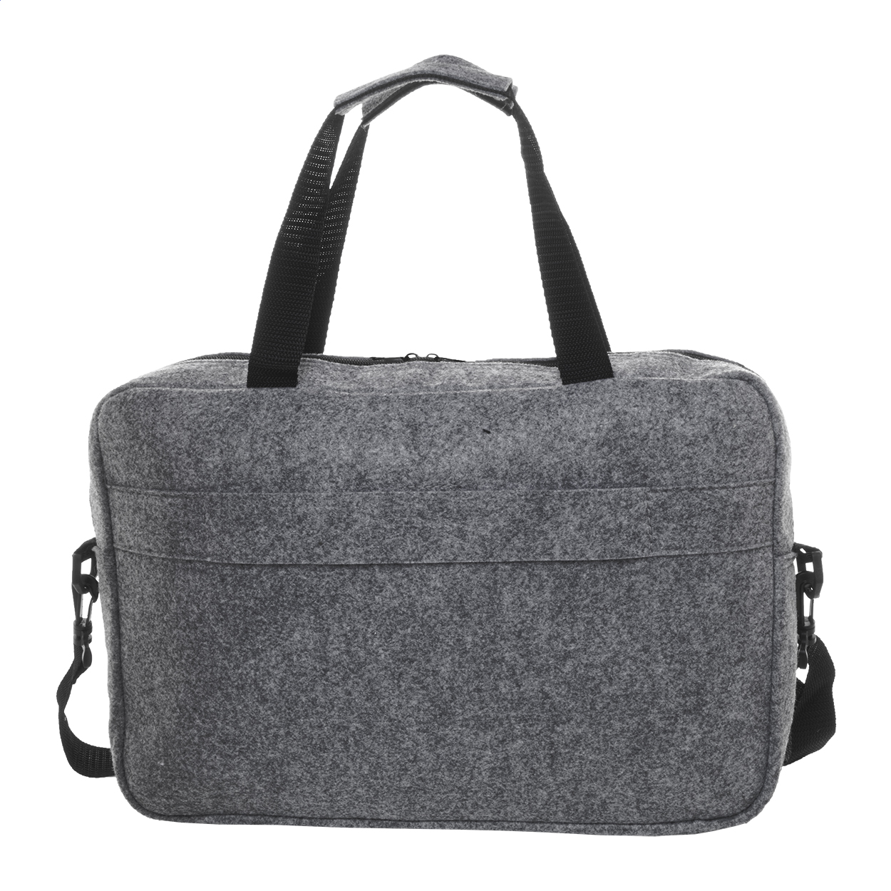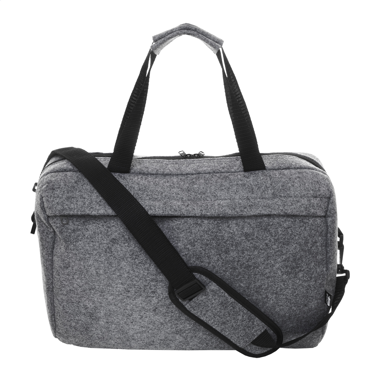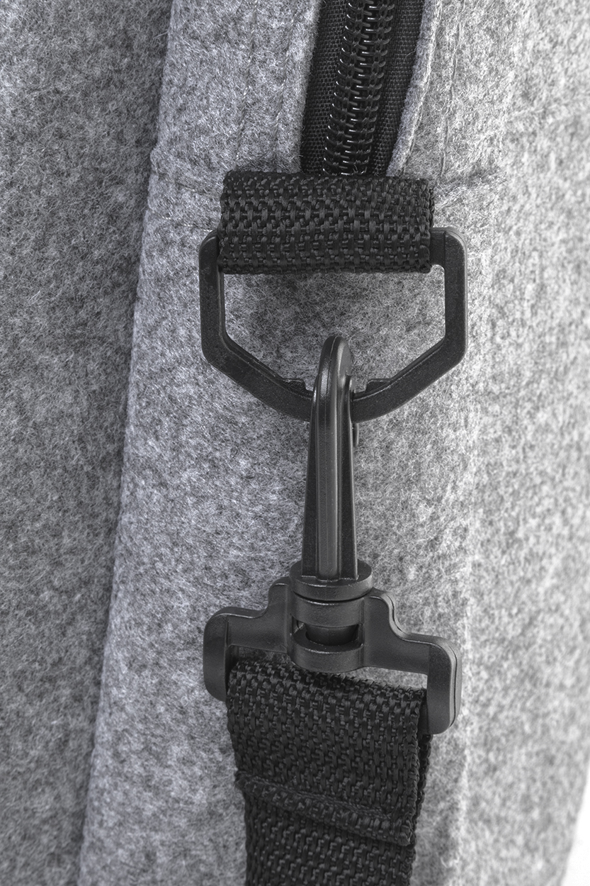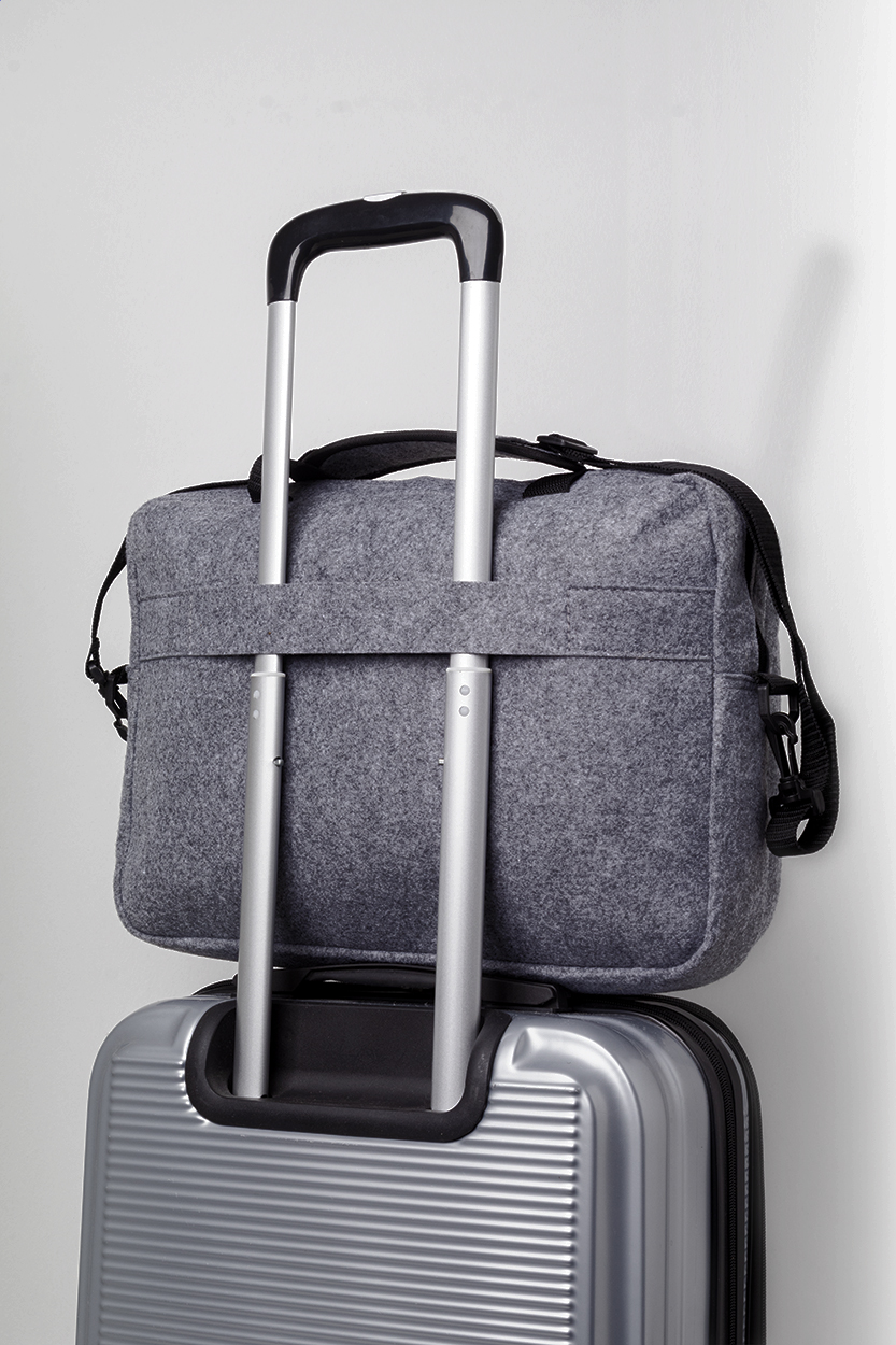 Taška na dokumenty z RPET plsti s hlavní přihrádkou na zip a přední kapsou. S přihrádkou na notebook (15"), popruhem na vozík a nastavitelným ramenním popruhem. S výrazným štítkem RPET.