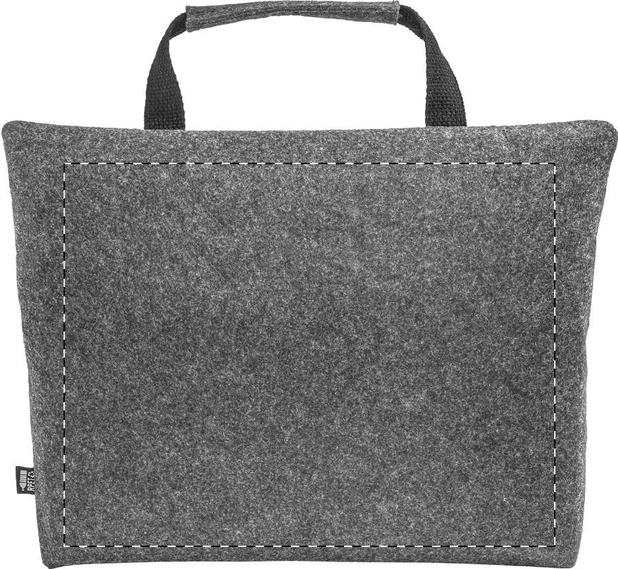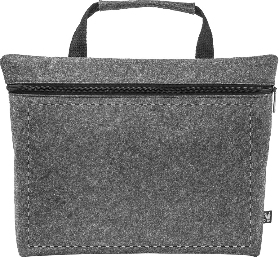 Plstěná taška na dokumenty nebo notebook z RPET s hlavní přihrádkou na zip a vnitřní kapsou na zip. Vhodná pro notebooky do 15". S výrazným štítkem RPET.
