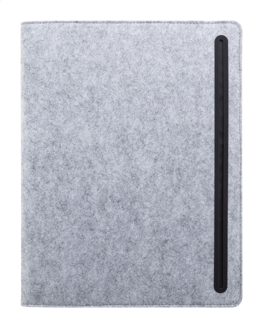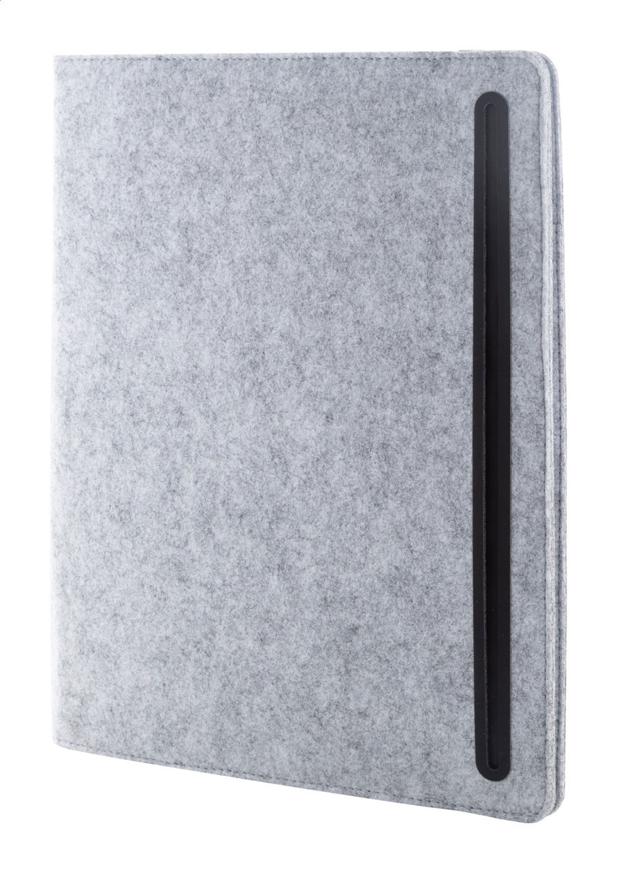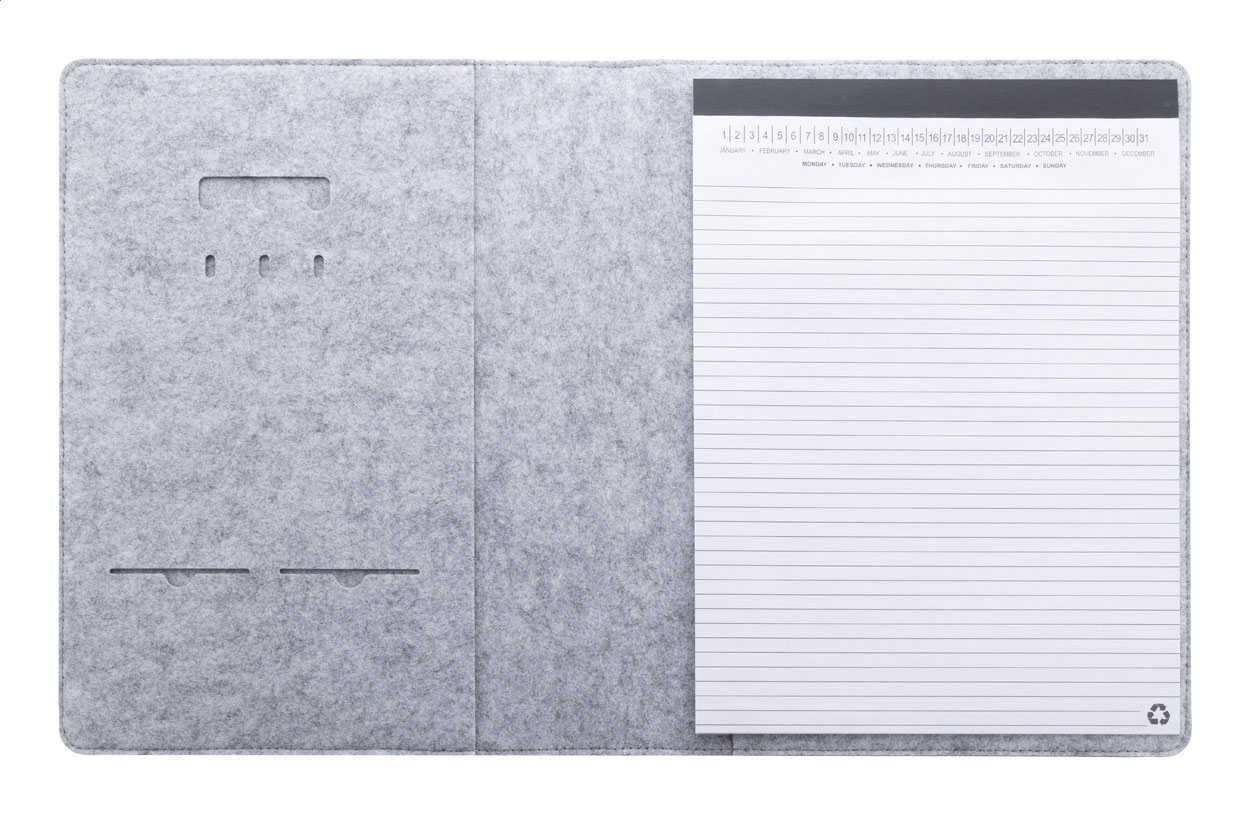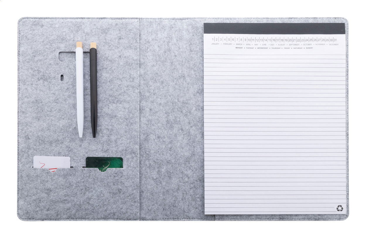 Plstěná sloha A4 na dokumenty z RPET s předními a několika vnitřními kapsami s organizérem. S 20 linkovanými listy poznámkového bloku z recyklovaného papíru.