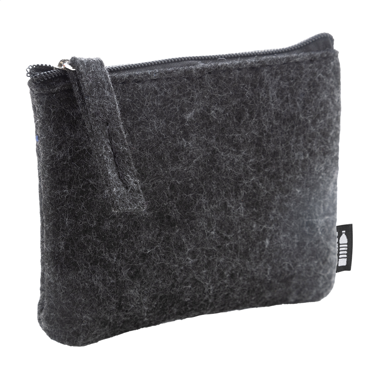 Peněženka z RPET plsti na zip. S výrazným štítkem RPET.