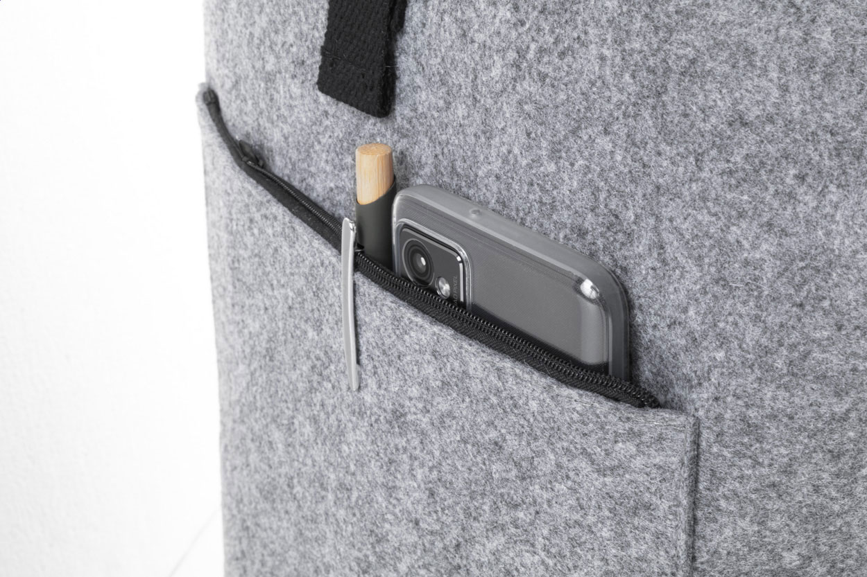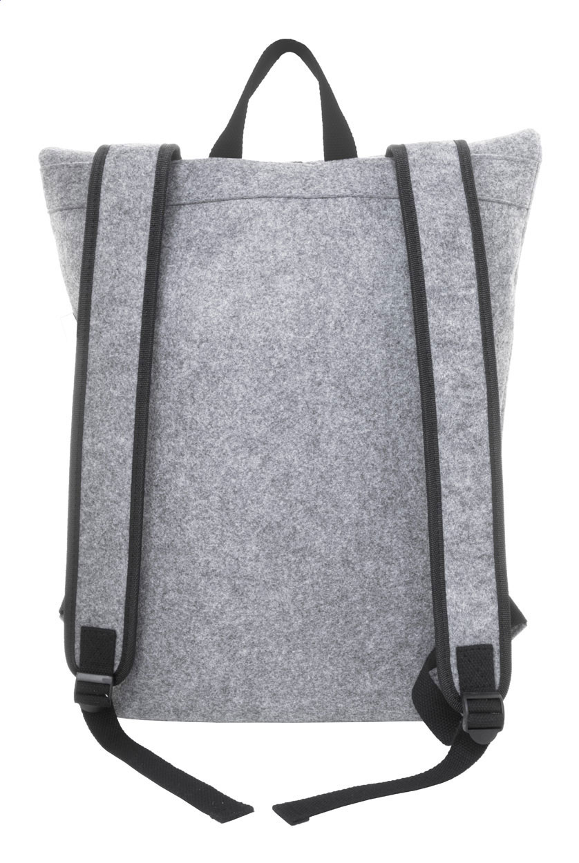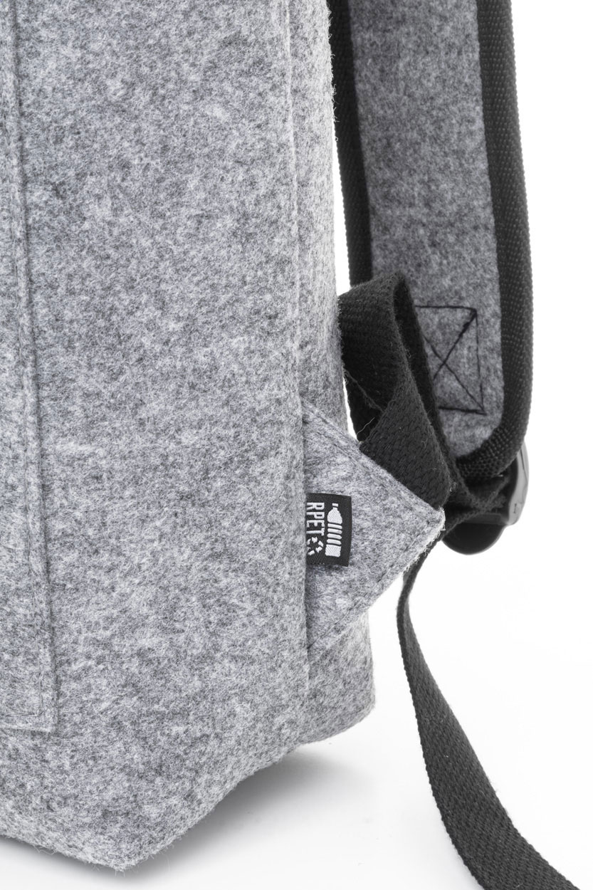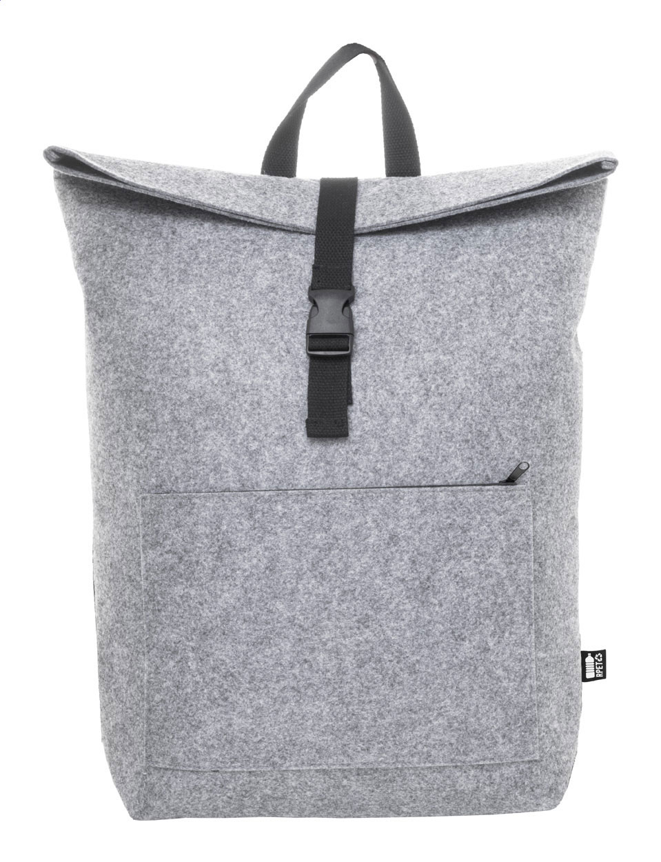 Batoh na rolování z plsti RPET s hlavní přihrádkou na přezku a přední kapsou na zip, přihrádkou na notebook (15") a polstrovanými ramenními popruhy. S výrazným štítkem RPET.