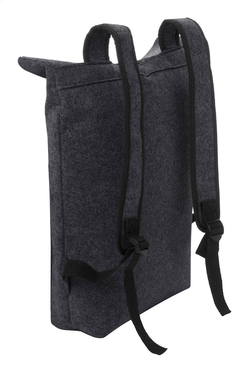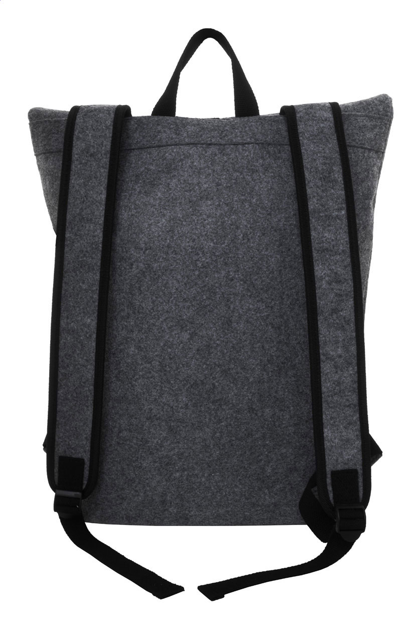 Batoh na rolování z plsti RPET s hlavní přihrádkou na přezku a přední kapsou na zip, přihrádkou na notebook (15") a polstrovanými ramenními popruhy. S výrazným štítkem RPET.