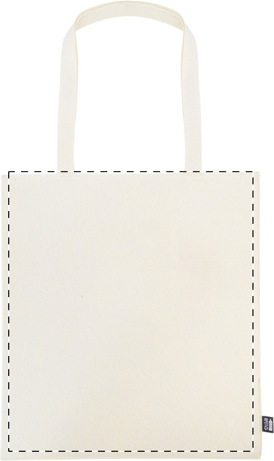 Nákupní taška z RPET plsti s dlouhými uchy. S výraznou etiketou z RPET.