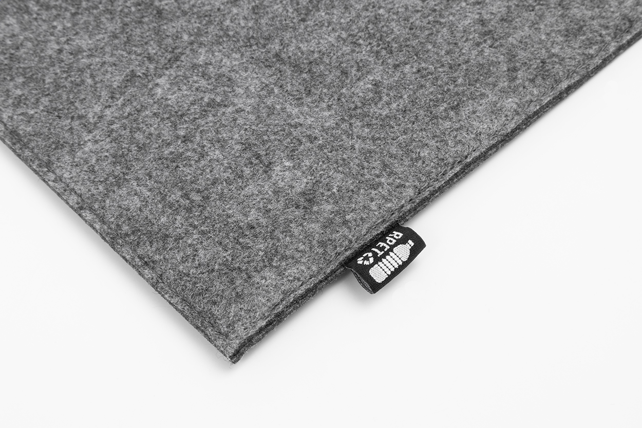 Nákupní taška z RPET plsti s dlouhými uchy. S výraznou etiketou z RPET.