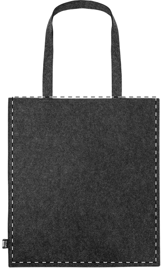 Nákupní taška z RPET plsti s dlouhými uchy. S výraznou etiketou z RPET.