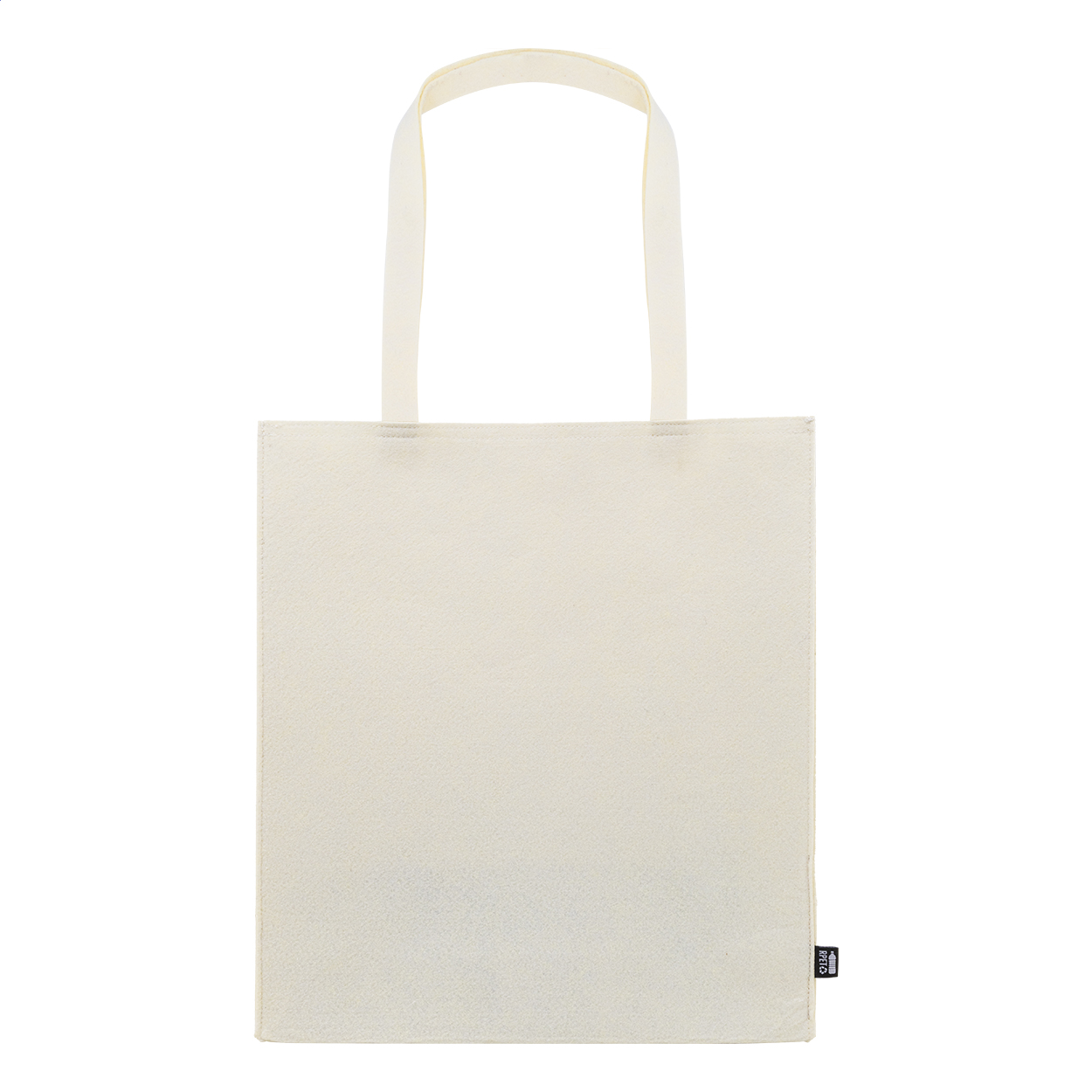 Nákupní taška z RPET plsti s klínkem a dlouhými uchy. S výraznou etiketou z RPET.