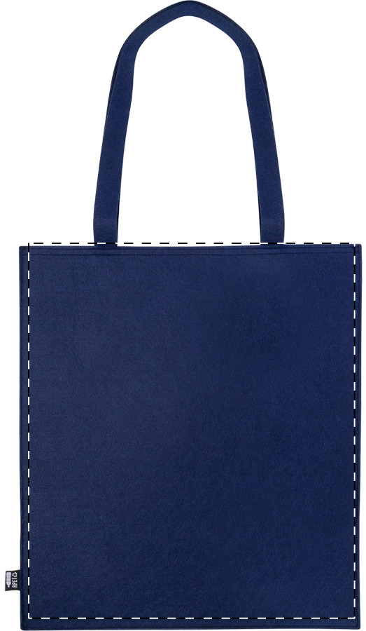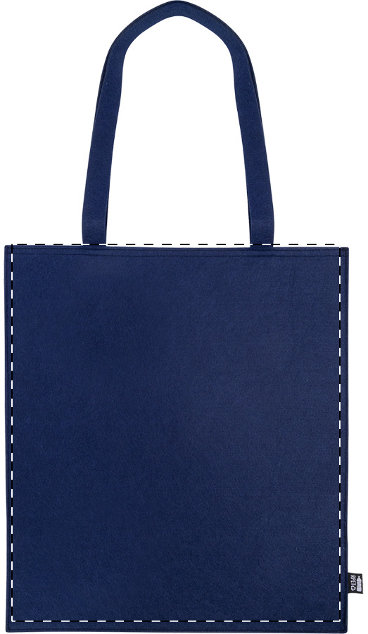 Nákupní taška z RPET plsti s klínkem a dlouhými uchy. S výraznou etiketou z RPET.