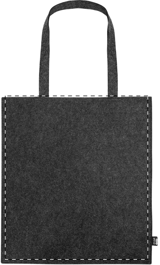 Nákupní taška z RPET plsti s klínkem a dlouhými uchy. S výraznou etiketou z RPET.