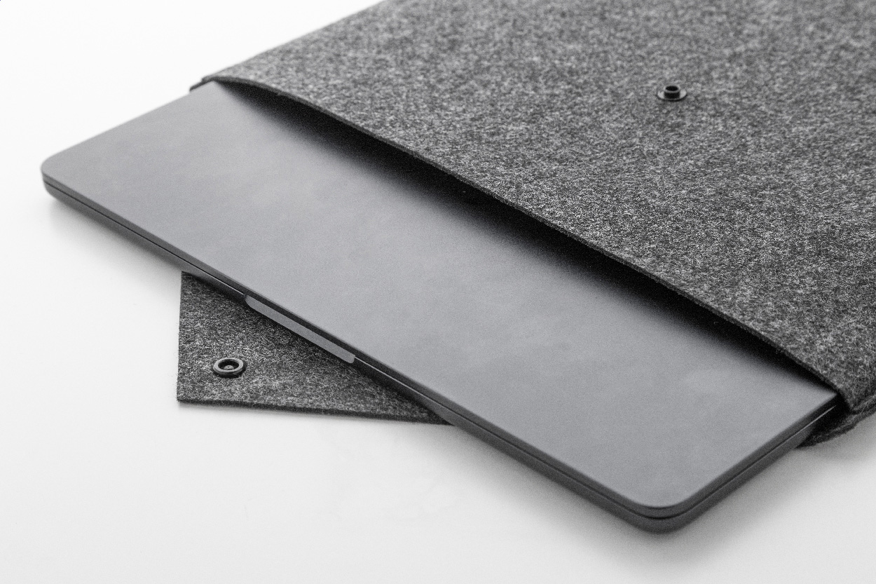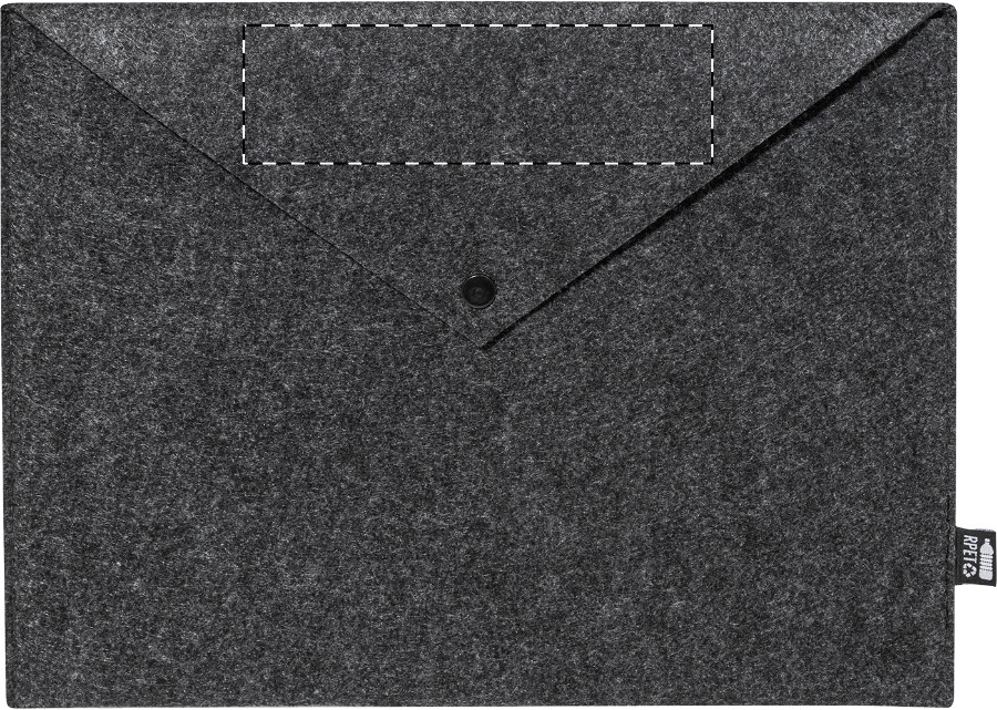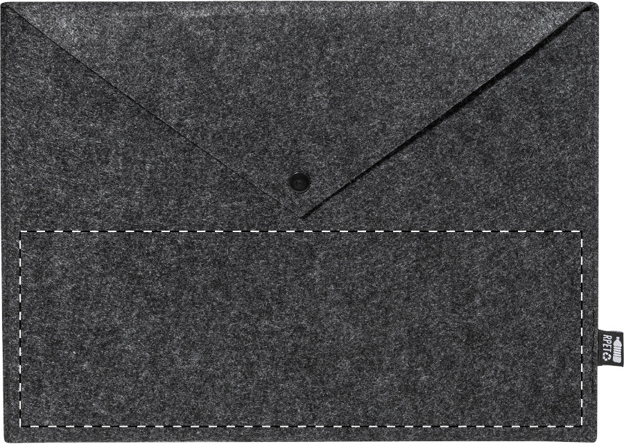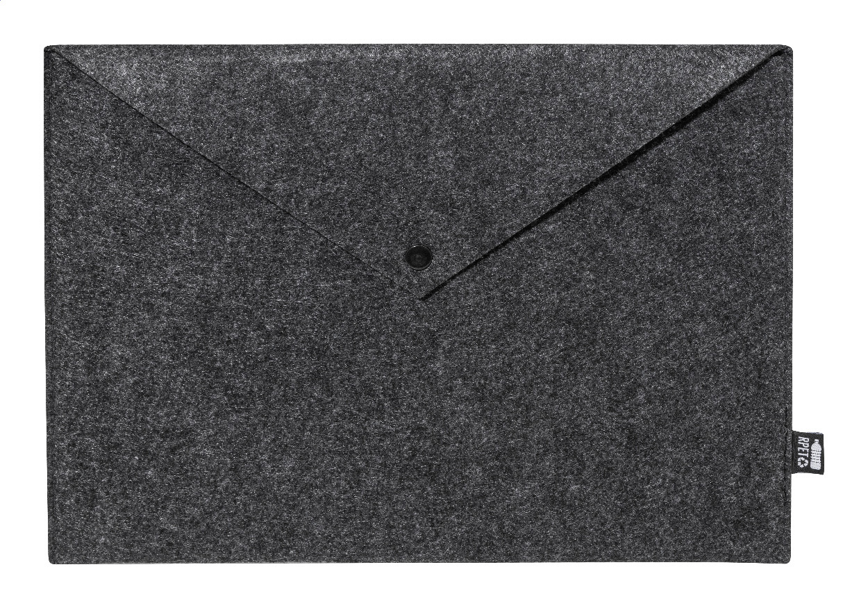 Taška na dokumenty nebo pouzdro na notebook z RPET plsti s knoflíkovým zapínáním. Vhodné pro notebooky do 13". S výrazným štítkem RPET.