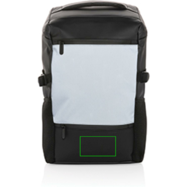 Praktický batoh z vysoce reflexního a voděodolného PU materiálu pro každodenní použití. Velké reflexní prvky zajistí viditelnost a bezpečnost i v noci. Prostorný hlavní oddíl včetně přihrádky na 15,6palcový notebook a malé kapsy na drobnosti. Odklápěcí vrchní část se zapínáním na zip umožňuje snadnou organizaci batohu. Míra reflexivity je v souladu s EN 13356:2001.