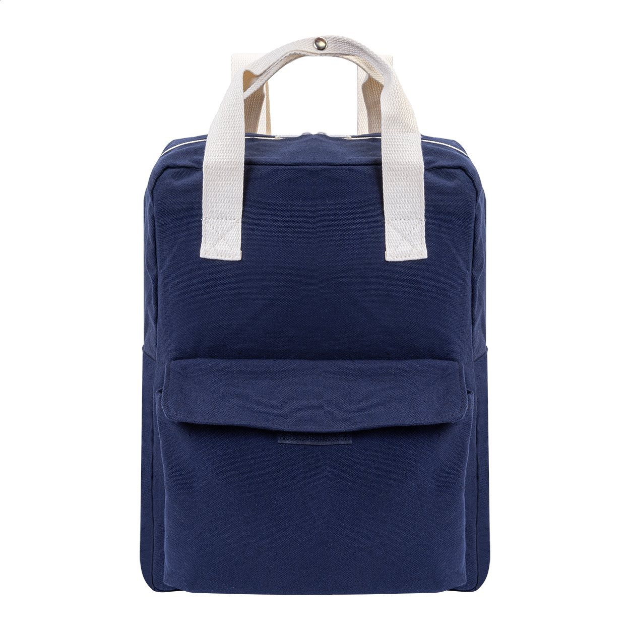 Batoh z recyklovaného plátna s hlavní přihrádkou na zip, polstrovanou přihrádkou na notebook (13") a přední kapsou na suchý zip. 70 % recyklované bavlny a 30 % RPET polyesteru. S výraznou etiketou o recyklované bavlně.