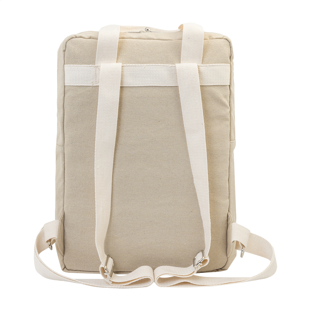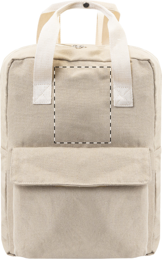 Batoh z recyklovaného plátna s hlavní přihrádkou na zip, polstrovanou přihrádkou na notebook (13") a přední kapsou na suchý zip. 70 % recyklované bavlny a 30 % RPET polyesteru. S výraznou etiketou o recyklované bavlně.
