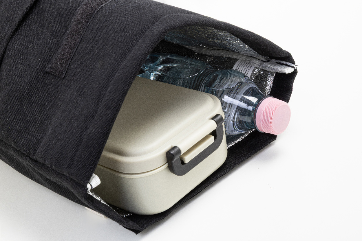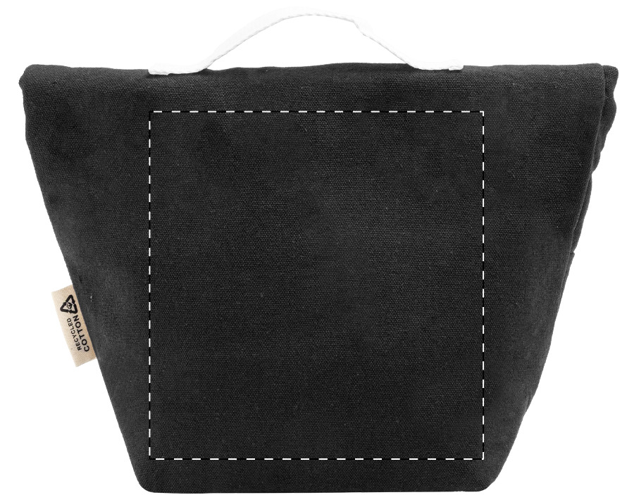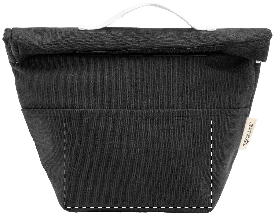 Chladicí taška z recyklovaného plátna s rolovacím vrškem, přední kapsou, hliníkovou výplní a zapínáním na suchý zip. 70 % recyklované bavlny a 30 % RPET polyesteru. S výrazným štítkem recyklované bavlny.