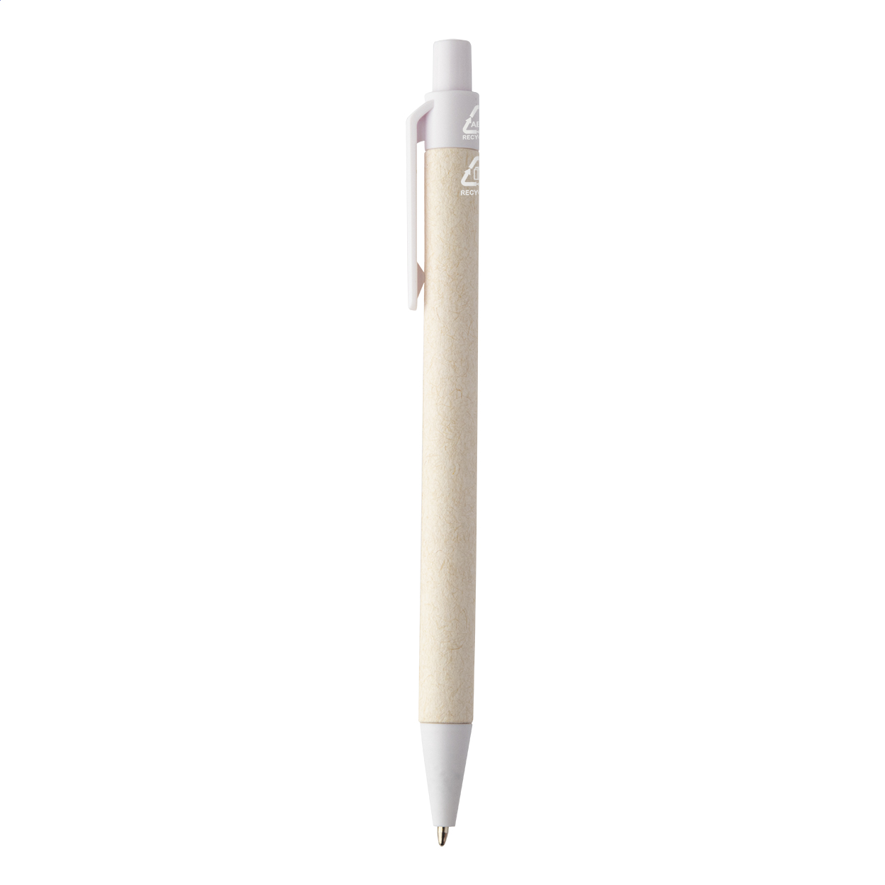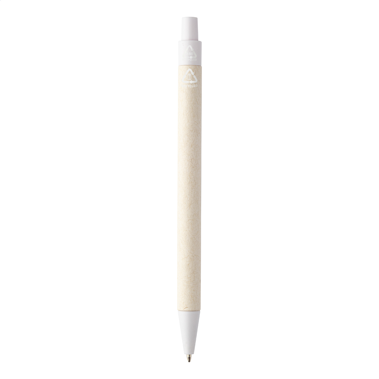 Kuličkové pero z recyklovaného kartonu na mléko s díly z recyklovaného ABS plastu. S modrou náplní.