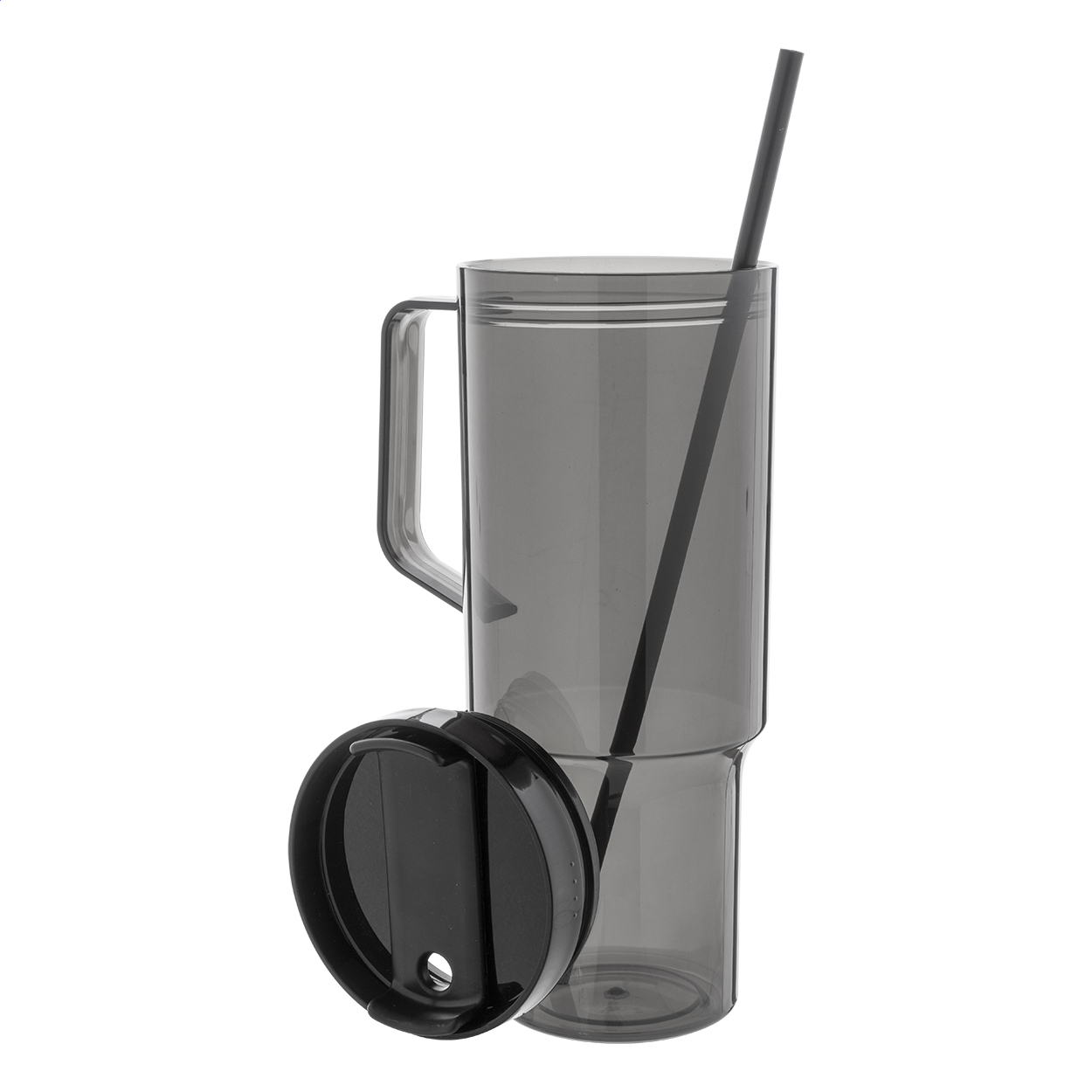 Jednostěnný cestovní hrnek z RPET s PP víčkem na pití a brčkem v odpovídající barvě. 1200 ml.