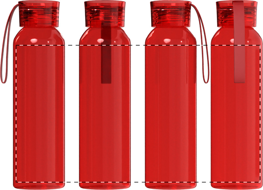Láhev z recyklovaného skla s barevně odpovídajícím PP víčkem a silikonovým popruhem, 500 ml. Nevhodné pro sycené nápoje.