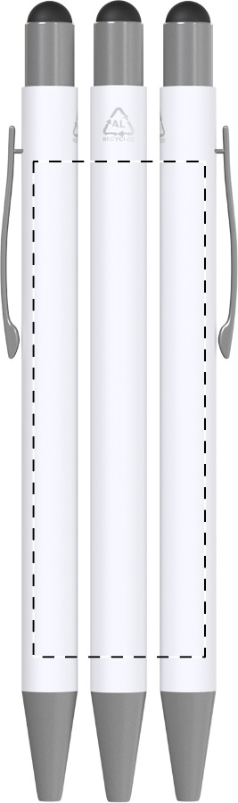 Bílé kuličkové pero z recyklovaného hliníku představuje praktickou volbu pro každého, kdo hledá spolehlivost a moderní funkce. Hebké pogumované tělo v čistě bílé barvě doplňují vkusné kovové prvky, což zajišťuje stabilitu při psaní i elegantní vzhled na pracovním stole.
