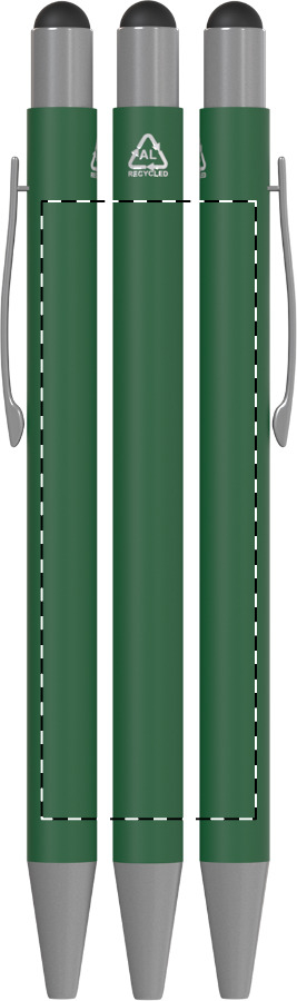 Svěží zelené kuličkové pero z recyklovaného hliníku kloubí ekologický přístup s moderním designem pro každodenní práci. Pogumovaná povrchová úprava těla je příjemná na dotek a zabraňuje vyklouznutí z ruky, zatímco kovové doplňky podtrhují celkovou odolnost.