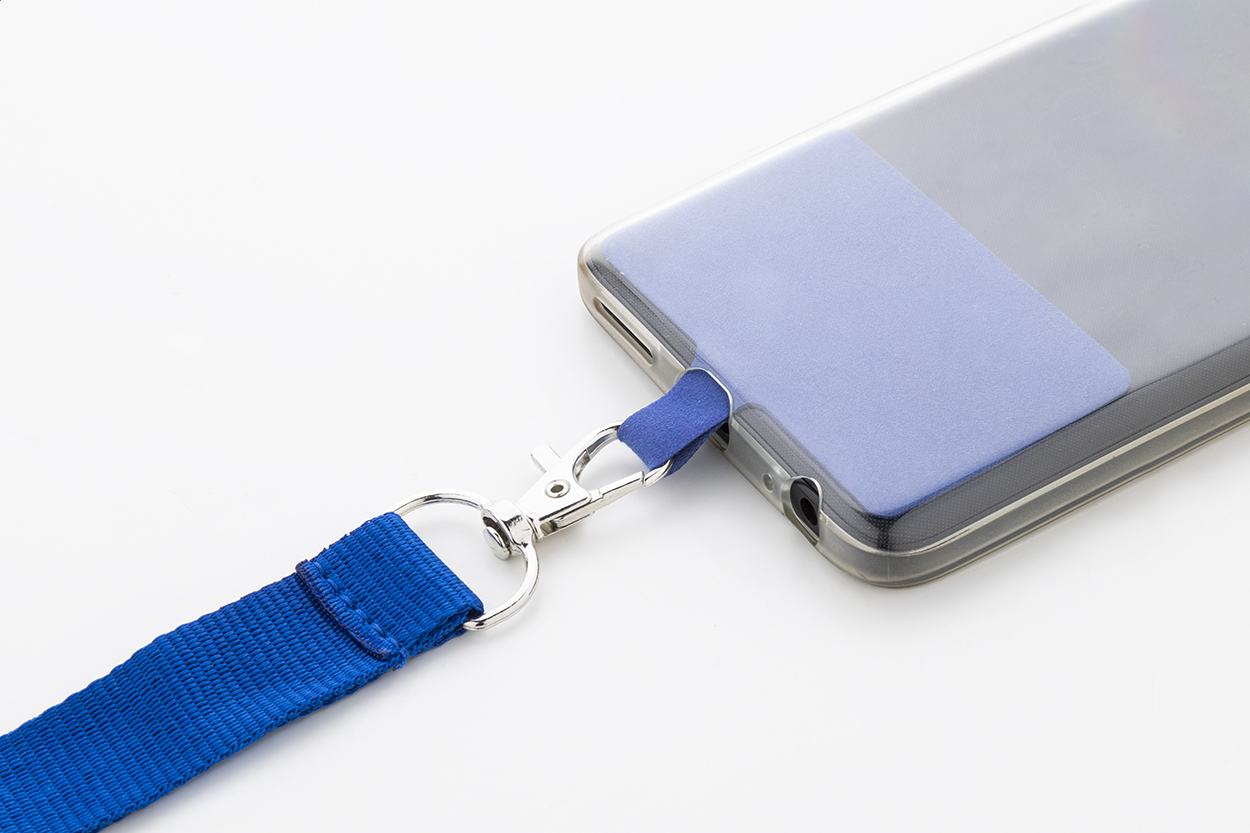 RPET lanyard na mobil s kovovou karabinou, bezpečnostní přezkou a vložkou na telefon ve stejné barvě.
