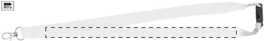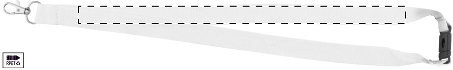RPET polyesterový lanyard s kovovou karabinou a bezpečnostní přezkou.