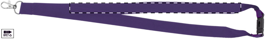 RPET polyesterový lanyard s kovovou karabinou a bezpečnostní přezkou.