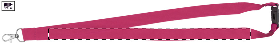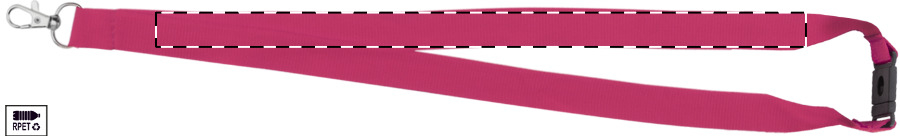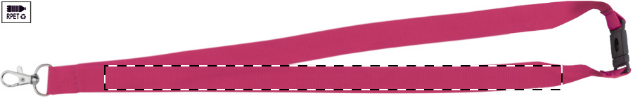 RPET polyesterový lanyard s kovovou karabinou a bezpečnostní přezkou.