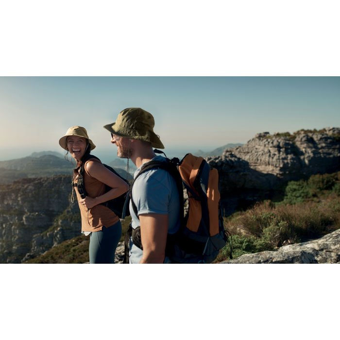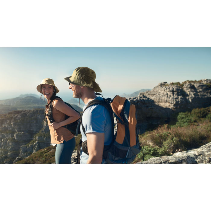 Voděodolný rybářský klobouk z 64g polyesteru, včetně pouzdra. S karabinkou z ABS plastu.