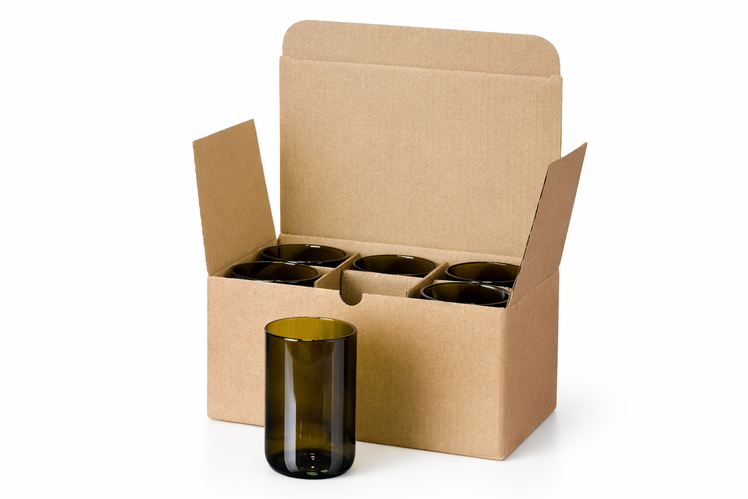Sklenky recyklované z lahví od vína můžete použít na všechny vaše oblíbené nápoje. Jsou silnostěnné a odolné, mohou se mýt v myčce. Otavený okraj sklenky je příjemně hladký, velmi dobře se z nich pije.