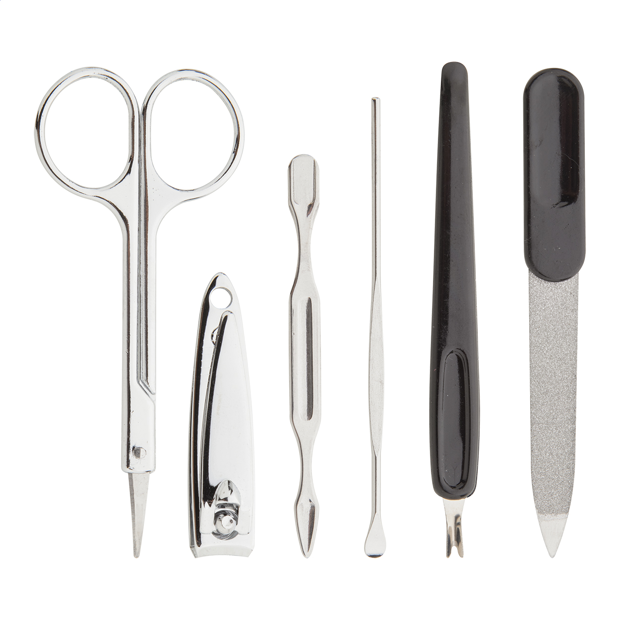 6dílná manikúra ve skládacím obalu s patentem na zavírání.
