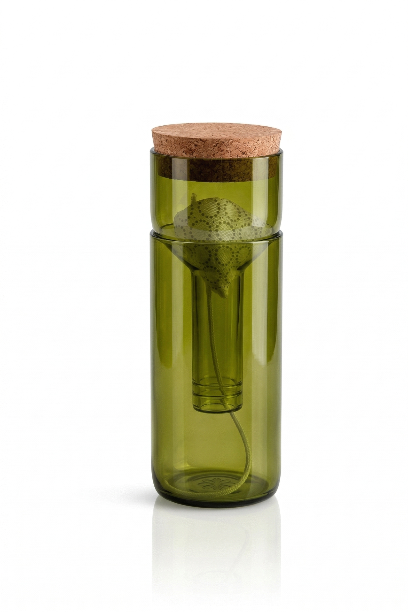 Sada obsahuje hrdlo lahve, sklenici o objemu 400 ml, korkové víčko, bavlněný knot a filtr.