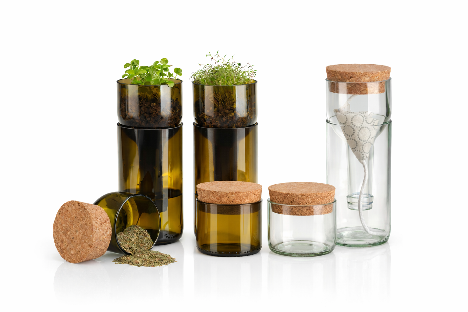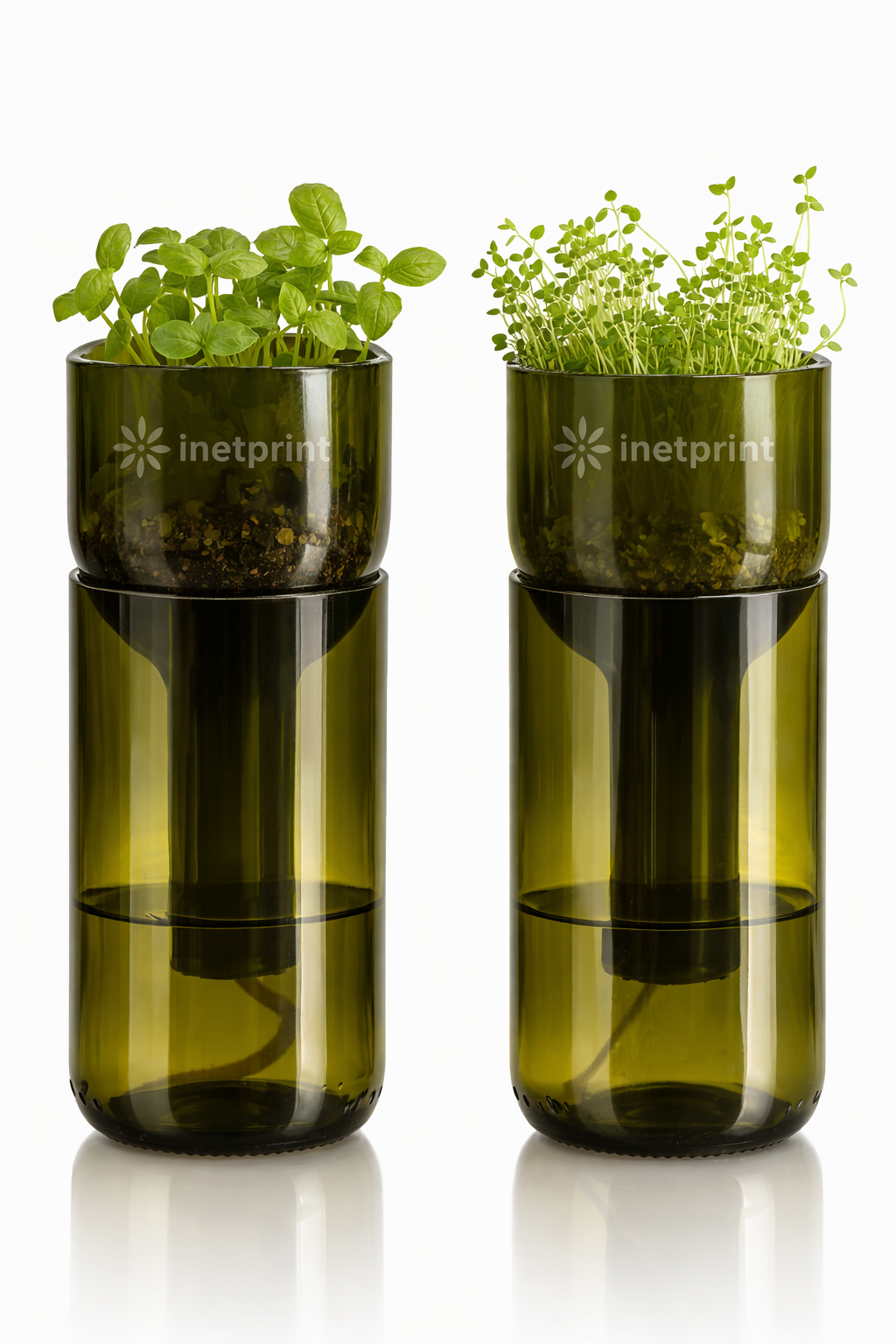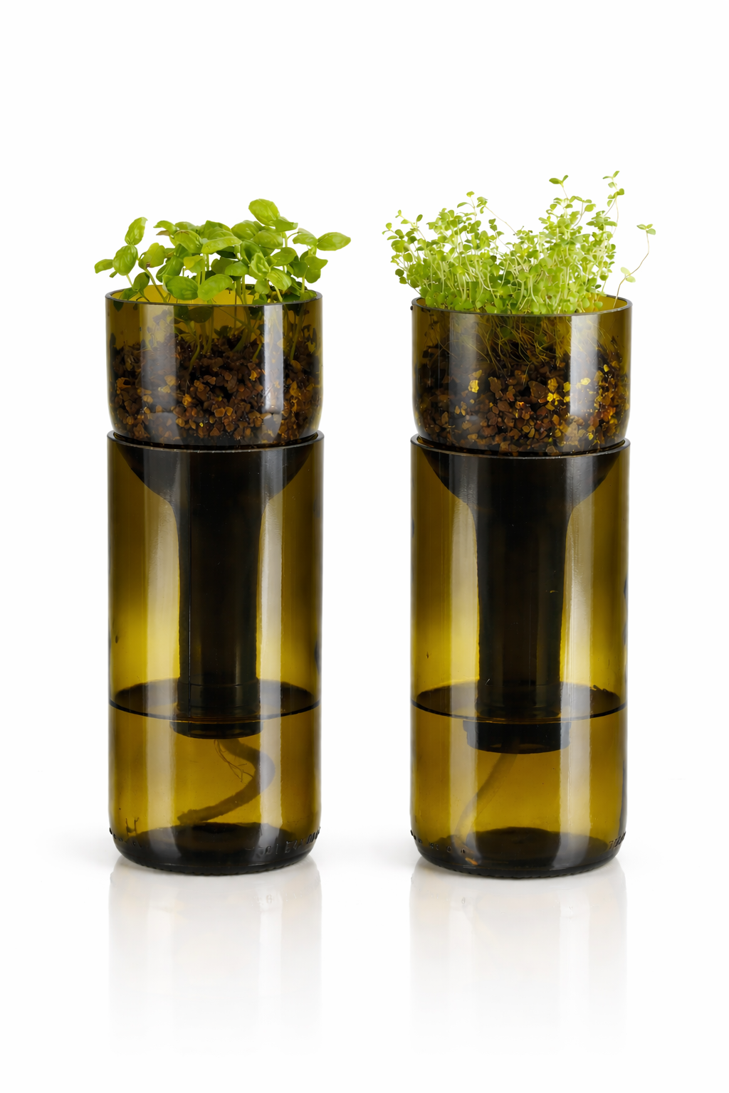 Tento set vznikl upcyklací z vinných lahví a je nepostradatelnou součástí výsadby bylinek a rostlinek, které do startu jinak potřebují nemalou pozornost a péči. Díky funkci samozavlažování už Vaše semínka, či klíčky neuschnou.