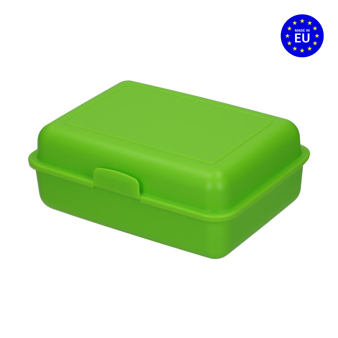 Plastový box se zaklapávacím uzávěrem. Plastová krabička na svačinu v trendy barvách. Na svačinovou dózu je možná technologie IMould. Vyrobeno v EU. Termín dodání se může lišit dle aktuálního vytížení výroby.