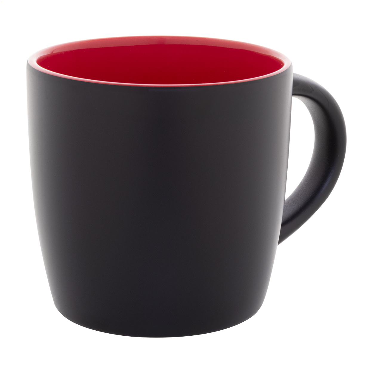 Černý keramický hrnek s barevným vnitřkem, 300 ml. Se speciální vrstvou pro gravírování, gravírované logo ladí s vnitřní barvou. V kraftové papírové krabici.