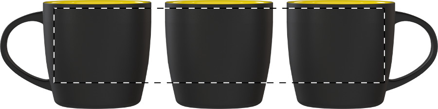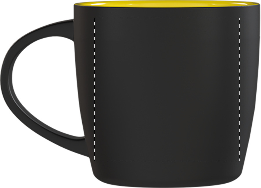 Černý keramický hrnek s barevným vnitřkem, 300 ml. Se speciální vrstvou pro gravírování, gravírované logo ladí s vnitřní barvou. V kraftové papírové krabici.