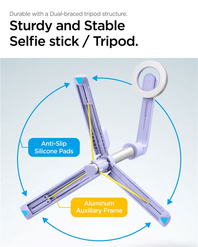 Selfie tyč s trojnožkou Spigen MagSafe Tripod Selfie Stick - fialová