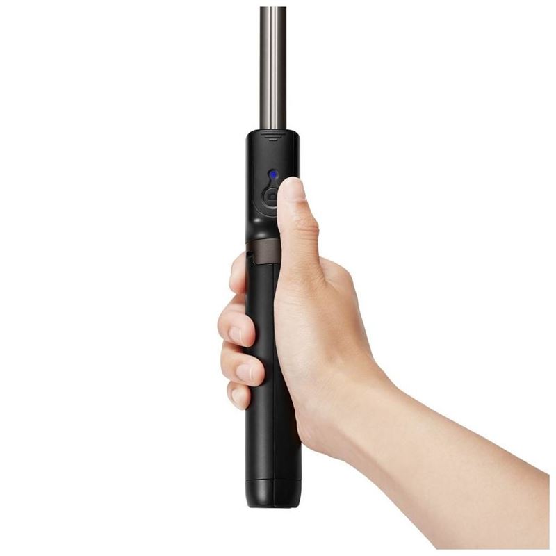 Teleskopická selfie tyč z matného plastu a hliníku umožňuje snadné fotografování se smartphony s operačním systémem Android i iOS. Ergonomická rukojeť zaručuje jistý úchop při manipulaci, zatímco výsuvný mechanismus dovoluje nastavit optimální vzdálenost od objektivu.