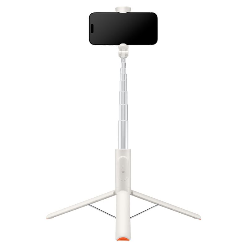 Béžová selfie tyč s funkcí automatického otevření trojnožky umožňuje bleskové postavení stativu na rovnou plochu. Hliníkové teleskopické tělo se vysouvá až na délku 146 cm, což ocení tvůrci obsahu při natáčení videí nebo focení velkých skupin.