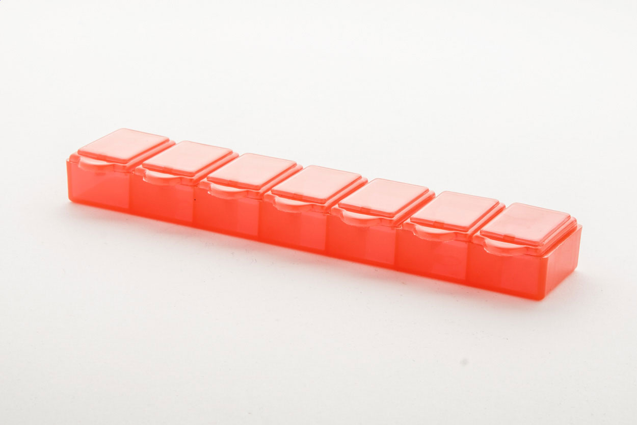 Plastový box na pilulky se 7 přihrádkami na celý týden.
