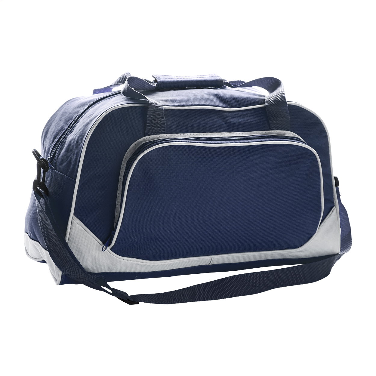 Sportovní taška s nastavitelným ramenním popruhem a zavíráním na zip. Materiál polyester 600D.