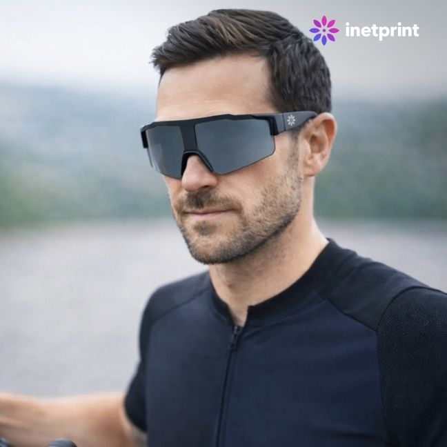 Sportovní sluneční brýle se zrcadlovými skly a černým rámečkem. Ochrana UV400.