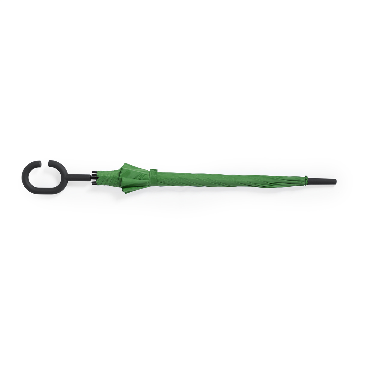 Rukojeť ve tvaru C: Ergonomická pogumovaná rukojeť ve tvaru C poskytuje pohodlné uchopení a umožňuje snadné přenášení deštníku.
