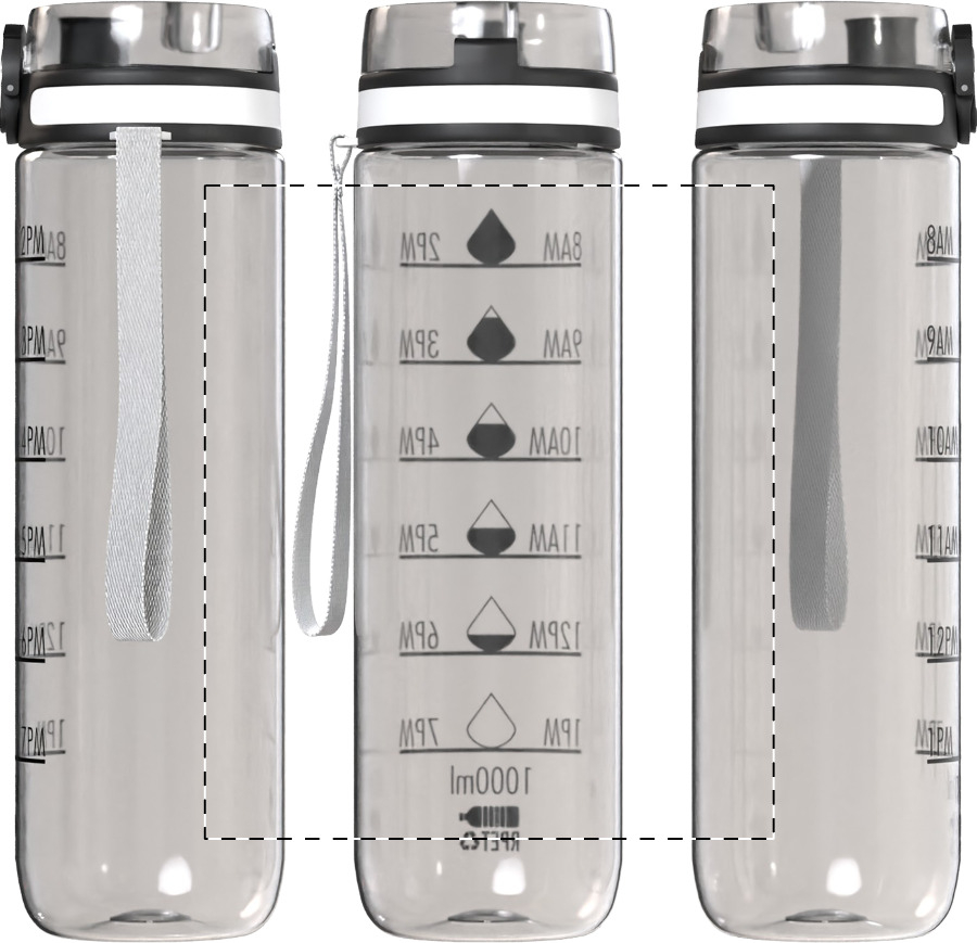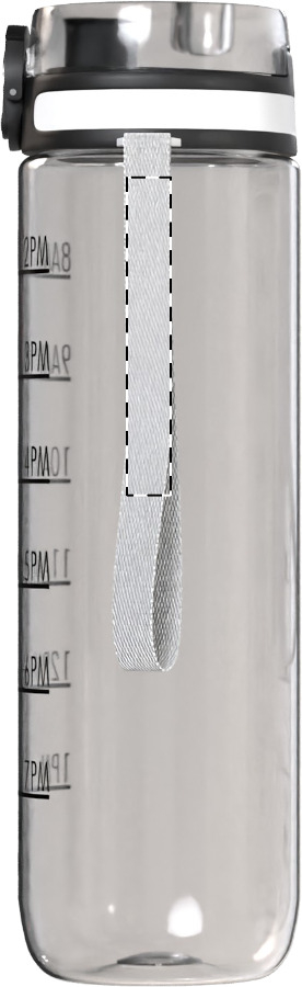Průhledná sportovní láhev z matného RPET poskytuje dokonalý přehled o množství zbývající vody. Motivační rysky s časovými údaji motivují k pravidelnému pití a pomáhají udržet tělo v kondici skrze rovnoměrný příjem tekutin.